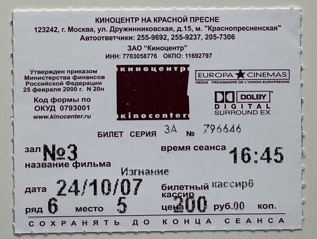 Cinema Center on Krasnaya Presnya, “Изгнание / The Banishment,” fishtickets, accessed March 4, 2026, http://pilotfish.info/items/show/164.