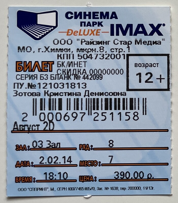 Cinema Park DeLuxe, “Август: Графство Осейдж / August: Osage County,” fishtickets, accessed March 4, 2026, http://pilotfish.info/items/show/174.