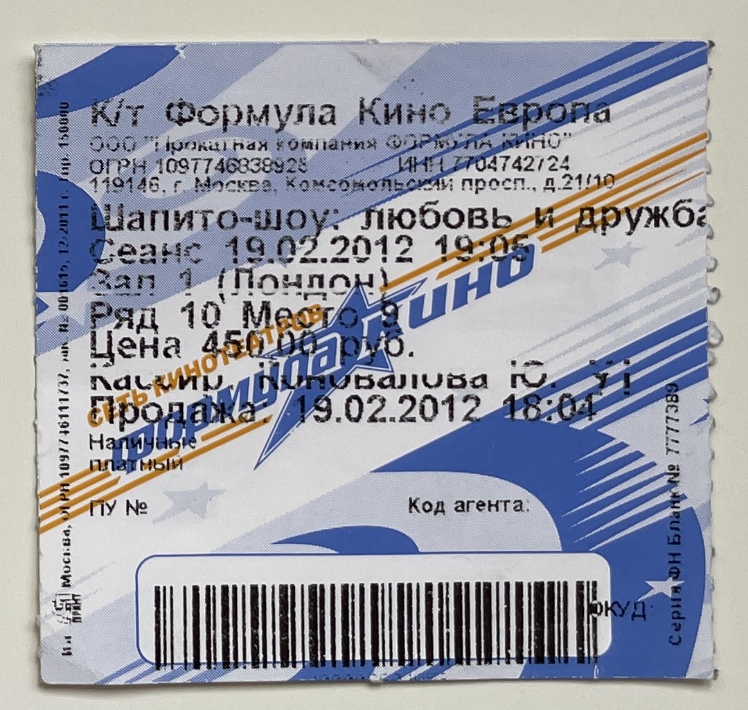 Formula Kino Europe, “Шапито-шоу: любовь и дружба / Tent-show: Love and Friendship,” fishtickets, accessed March 4, 2026, http://pilotfish.info/items/show/187.