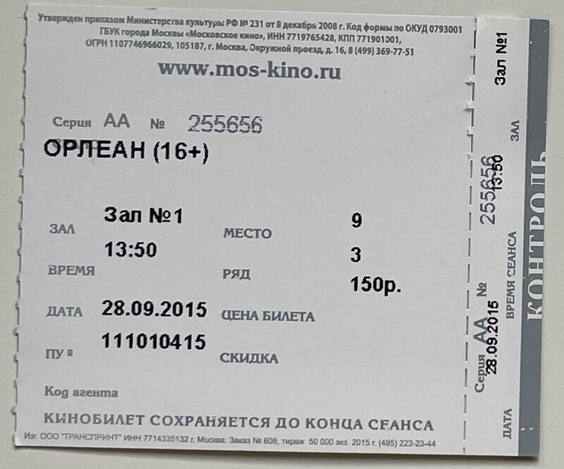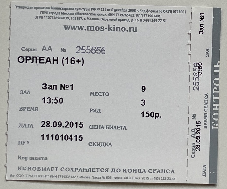 Moskino Zvezda, “Орлеан / Orlean,” fishtickets, accessed March 4, 2026, http://pilotfish.info/items/show/189.