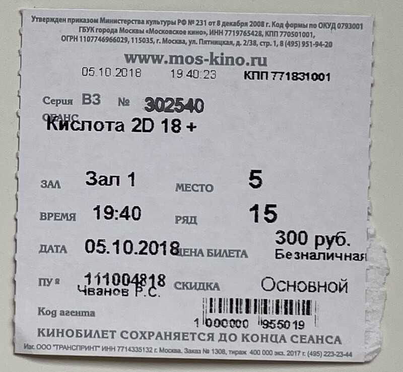 Moskino Zvezda, “Кислота / Acid,” fishtickets, accessed March 4, 2026, http://pilotfish.info/items/show/192.