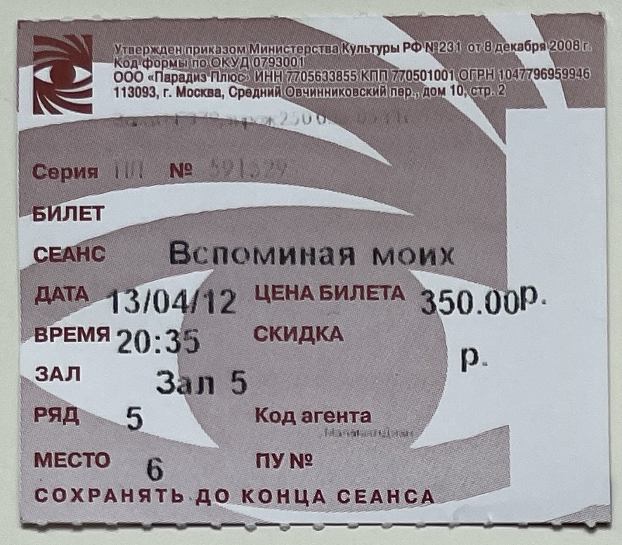 5 Zvezd, “Вспоминая моих печальных шлюх / Memoria de mis putas tristes,” fishtickets, accessed March 4, 2026, http://pilotfish.info/items/show/194.