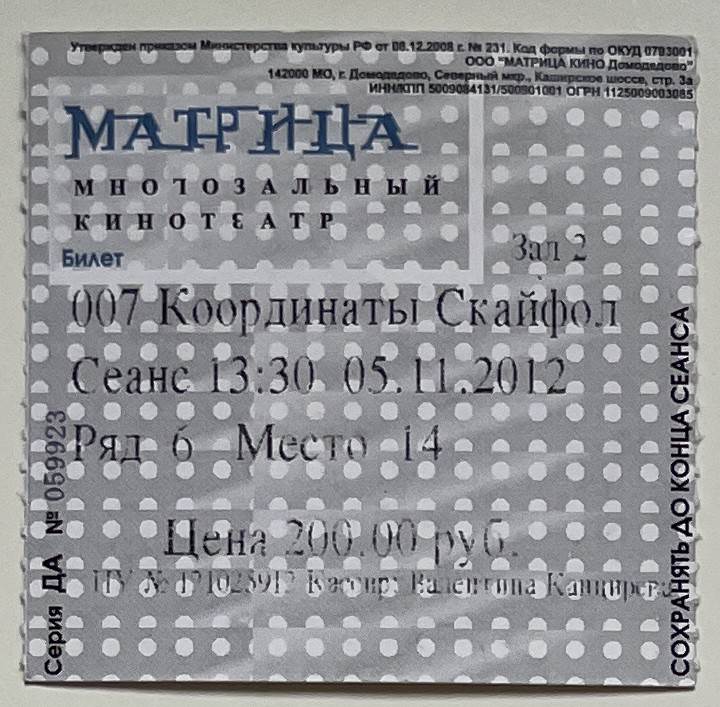 Matrix, “007: Координаты «Скайфол» / Skyfall,” fishtickets, accessed March 4, 2026, http://pilotfish.info/items/show/210.