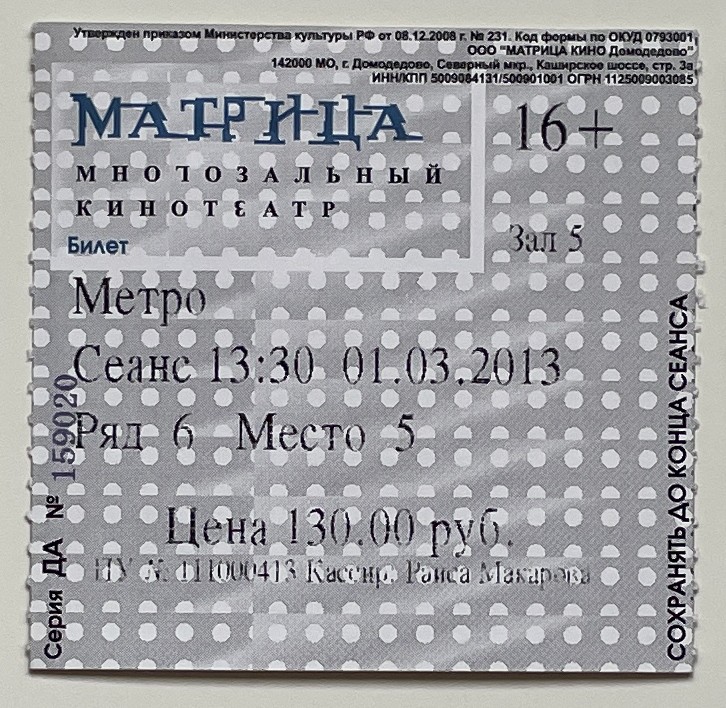Matrix, “Метро / Metro,” fishtickets, accessed March 4, 2026, http://pilotfish.info/items/show/214.
