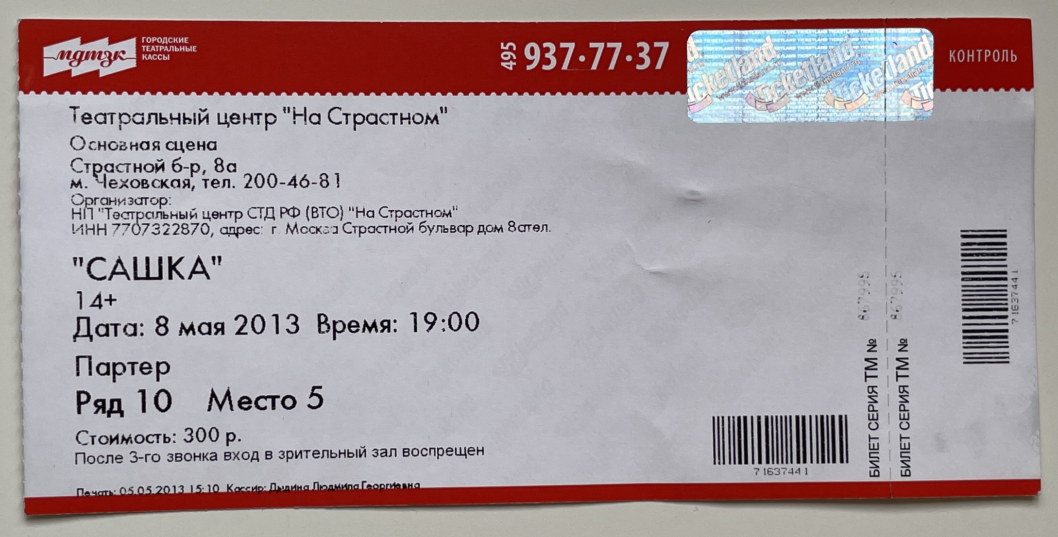 Theatre Center "Na Strastnom", “Сашка / Sashka,” fishtickets, accessed March 4, 2026, http://pilotfish.info/items/show/220.