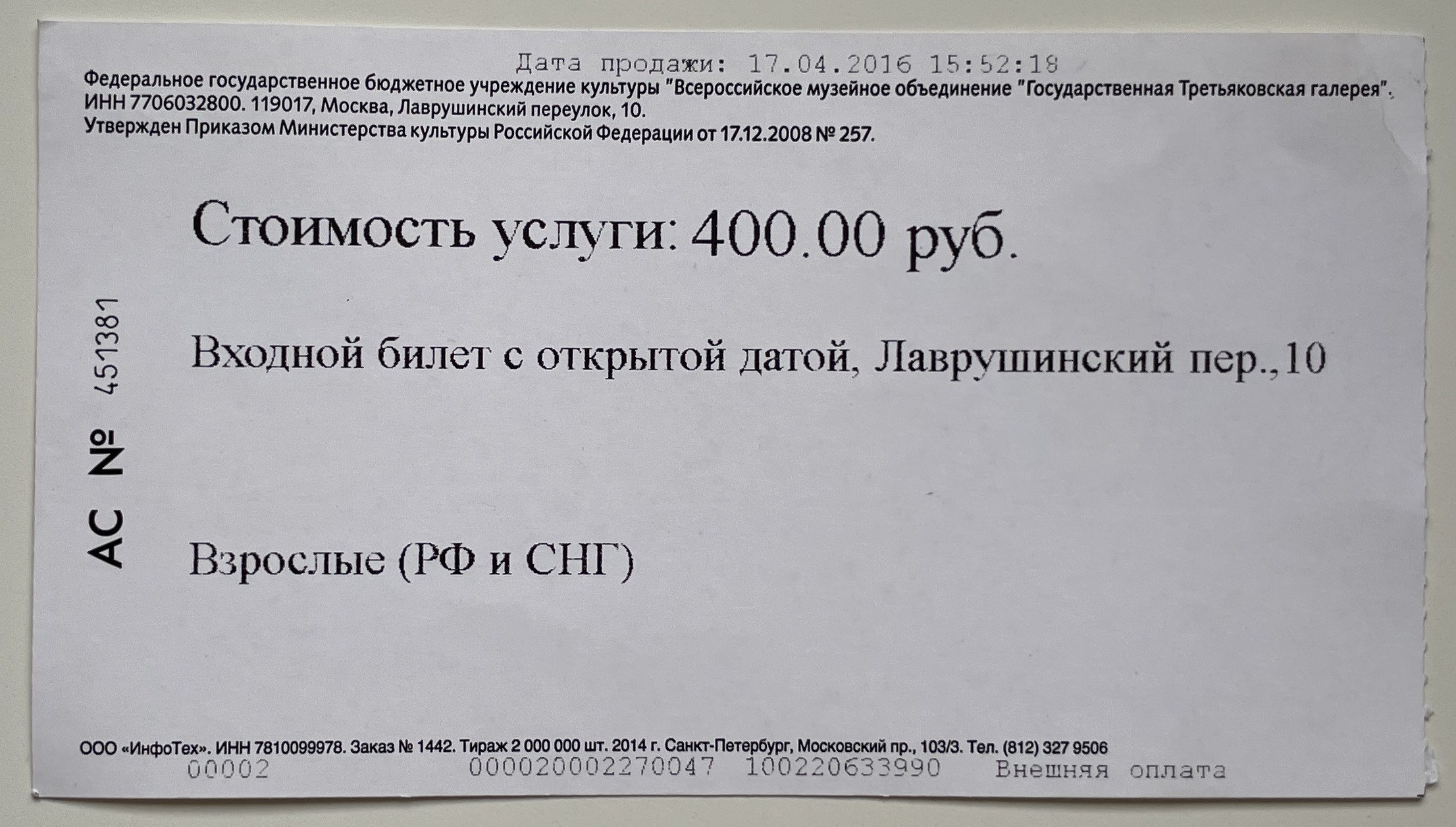 State Tretyakov Gallery, “Государственная Третьяковская Галерея / State Tretyakov Gallery,” fishtickets, accessed March 4, 2026, http://pilotfish.info/items/show/225.