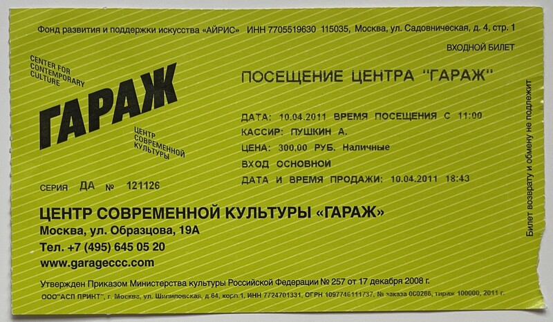 Garage Museum of Contemporary Art, “Музей современного искусства «Гараж» / Garage Museum of Contemporary Art,” fishtickets, accessed March 4, 2026, http://pilotfish.info/items/show/238.