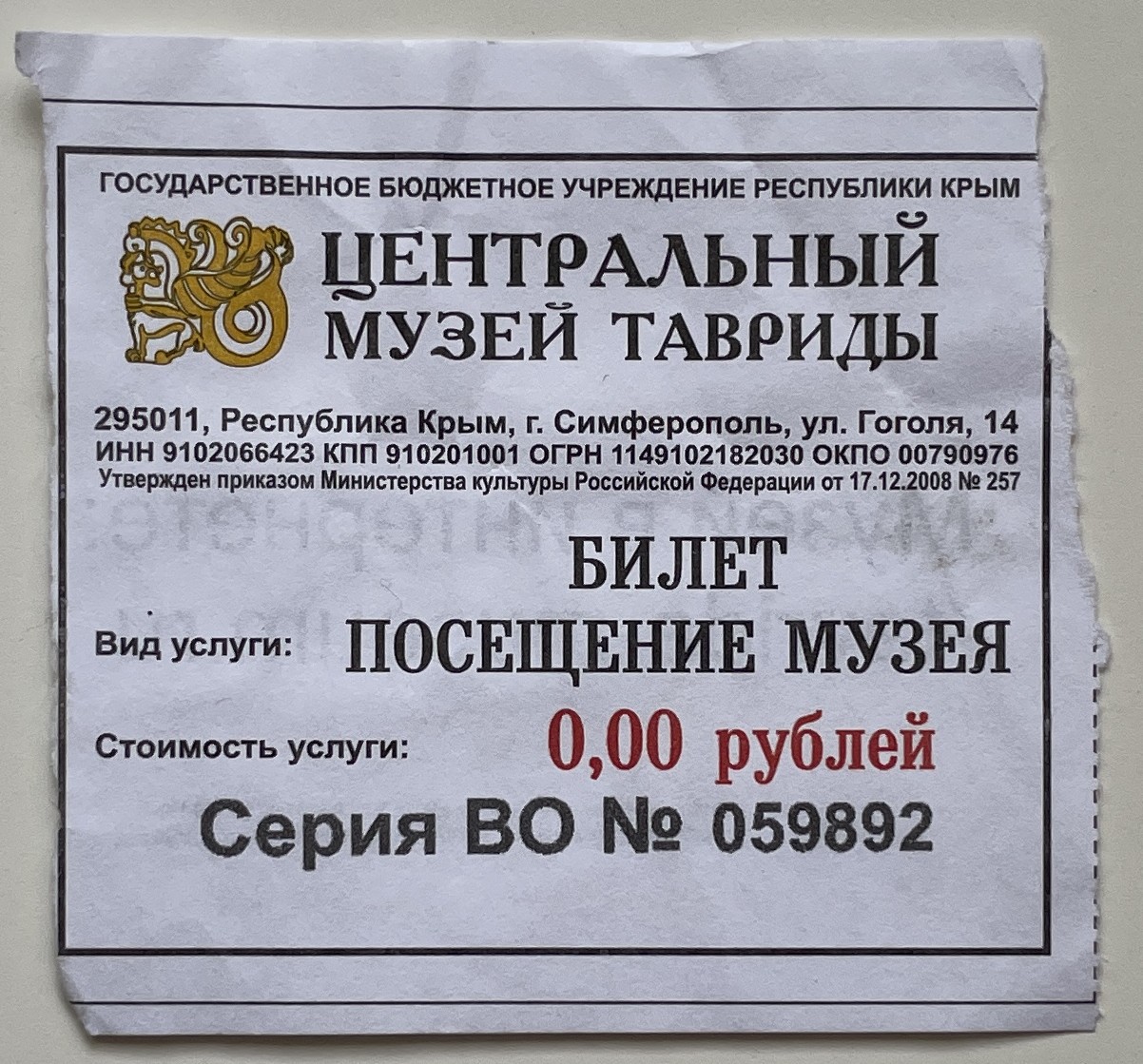 Central Museum of Tavrida, “Центральный музей Тавриды / Central Museum of Tavrida,” fishtickets, accessed March 4, 2026, http://pilotfish.info/items/show/245.
