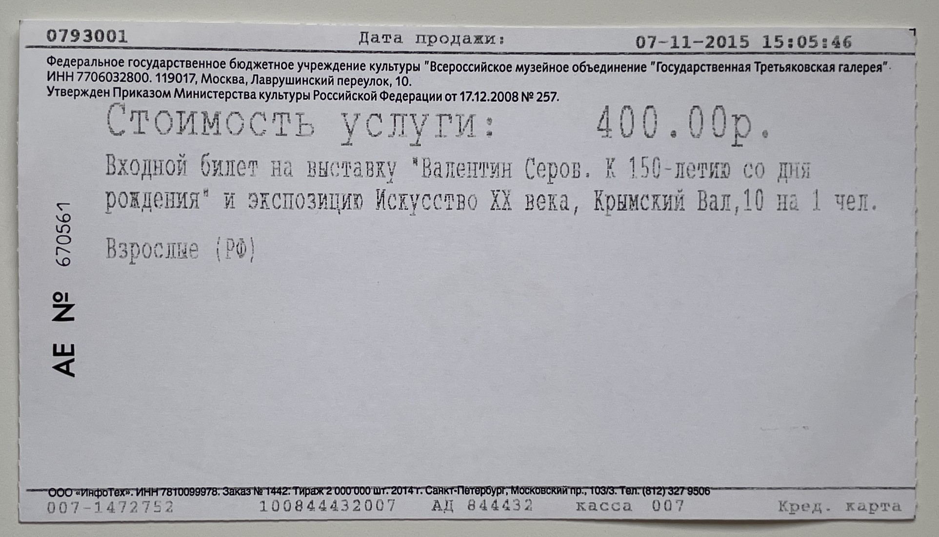 State Tretyakov Gallery, “Валентин Серов. К 150-летию со дня рождения. Государственная Третьяковская галерея / Valentin Serov. To the 150th birthday anniversary. State Tretyakov Gallery,” fishtickets, accessed March 4, 2026, http://pilotfish.info/items/show/271.