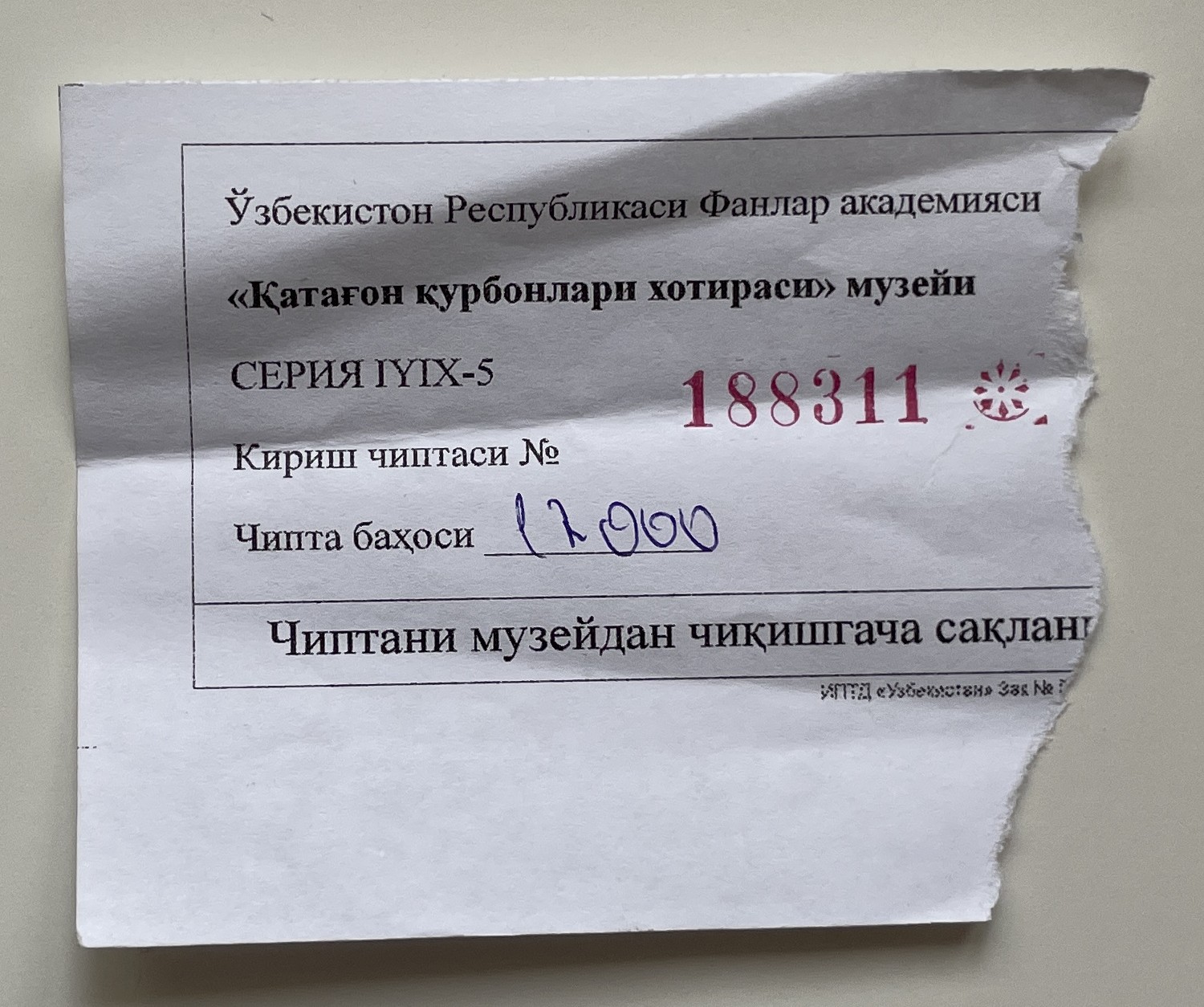 Price: 12000 Uzbekistani sums