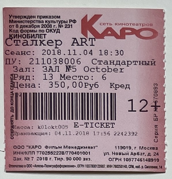 Karofilm Oktyabr, “Сталкер / Stalker,” fishtickets, accessed March 4, 2026, http://pilotfish.info/items/show/284.