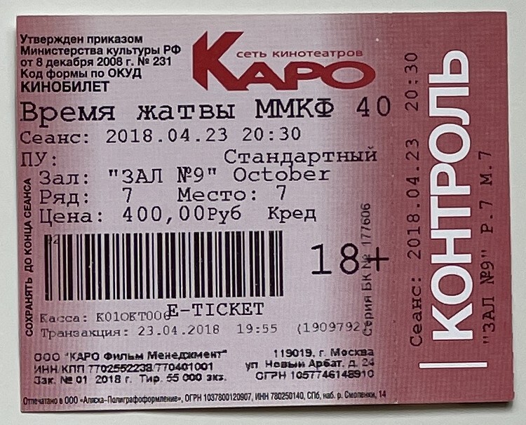 Karofilm Oktyabr, “Время жатвы / Harvest Time,” fishtickets, accessed March 4, 2026, http://pilotfish.info/items/show/295.