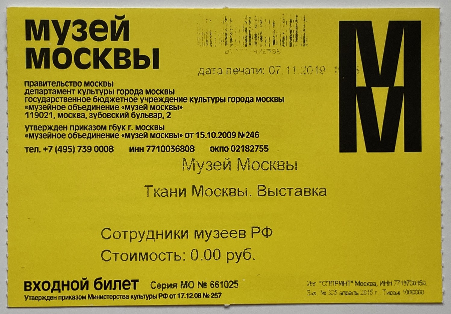 Moscow Museum, “Выставка «Ткани Москвы». Музей Москвы / "Fabrics of Moscow" Exhibition. Moscow Museum,” fishtickets, accessed March 4, 2026, http://pilotfish.info/items/show/309.