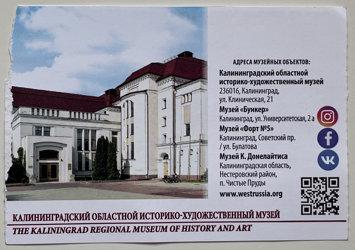 Kaliningrad Regional Museum of History and Arts, “Калининградский областной историко-художественный музей / Kaliningrad Regional Museum of History and Arts,” fishtickets, accessed March 4, 2026, http://pilotfish.info/items/show/312.