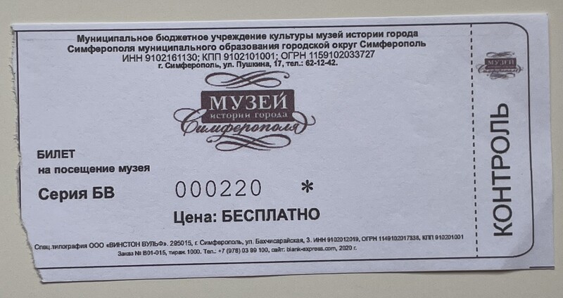 Simferopol City History Museum, “Музей истории города Симферополя / Simferopol City History Museum,” fishtickets, accessed March 4, 2026, http://pilotfish.info/items/show/317.