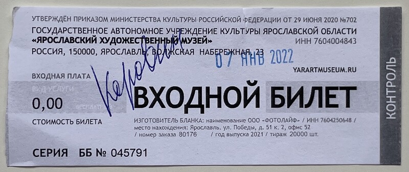 Yaroslavl Art Museum, “Ярославский художественный музей / Yaroslavl Art Museum,” fishtickets, accessed March 4, 2026, http://pilotfish.info/items/show/325.