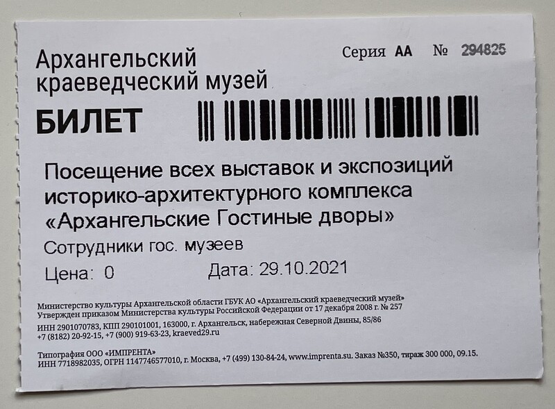 Arkhangelsk Regional Lore Museum, “Архангельский краеведческий музей / Arkhangelsk Regional Lore Museum,” fishtickets, accessed March 4, 2026, http://pilotfish.info/items/show/328.