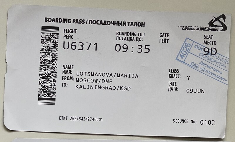 Ural Airlines, “Moscow—Kaliningrad Flight,” fishtickets, accessed March 4, 2026, http://pilotfish.info/items/show/339.