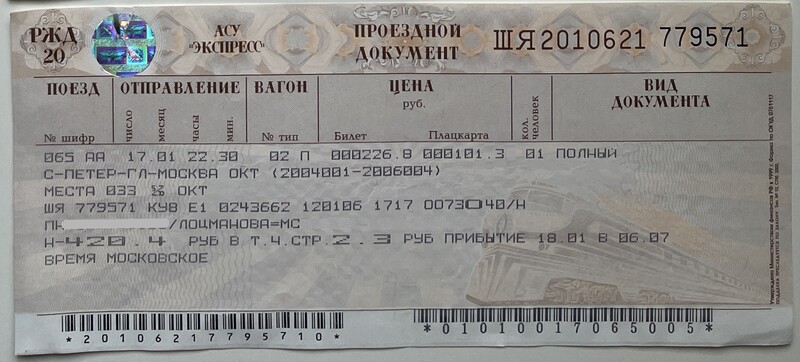 Russian Railways, “Поезд Санкт-Петербург—Москва / Saint Petersburg—Moscow Train,” fishtickets, accessed March 4, 2026, http://pilotfish.info/items/show/347.