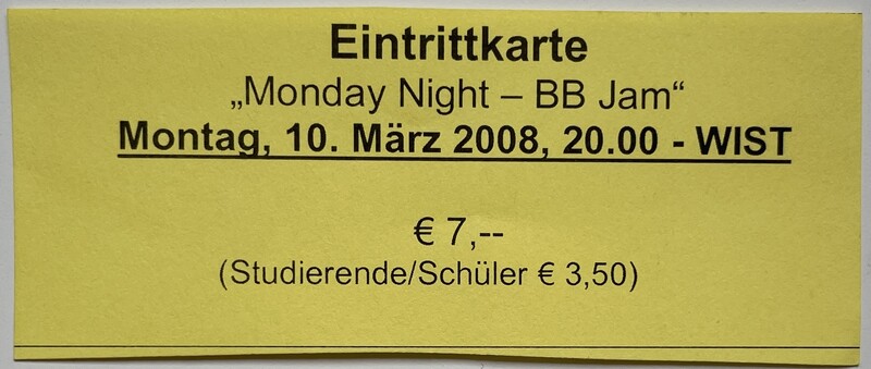 WIST, “Monday Night — BB Jam,” fishtickets, accessed March 4, 2026, http://pilotfish.info/items/show/348.
