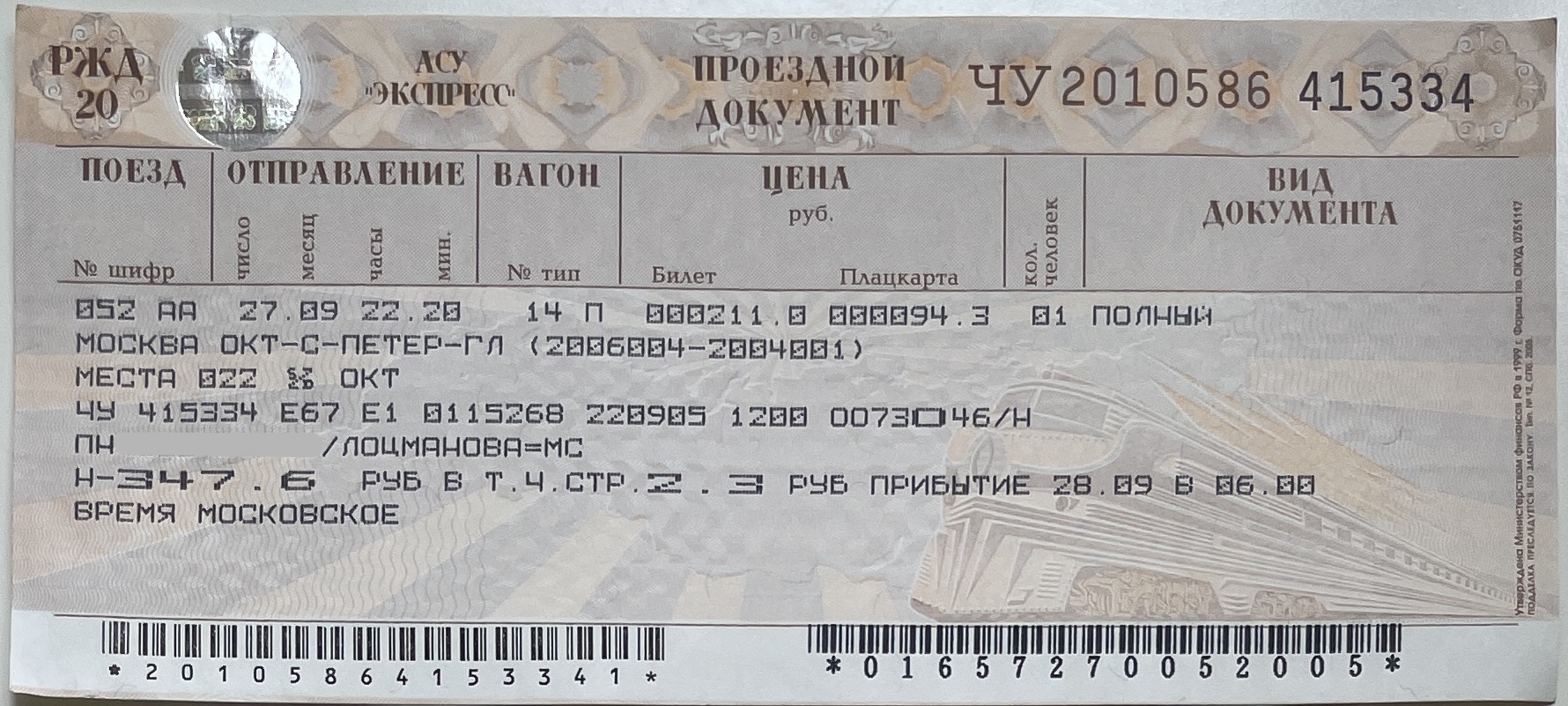 Поезд Москва—Санкт-Петербург / Moscow—Saint Petersburg Train