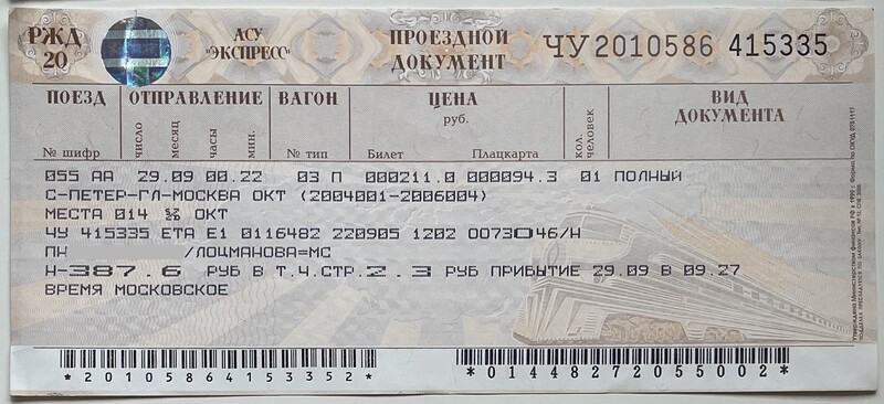 Russian Railways, “Поезд Санкт-Петербург—Москва / Saint Petersburg—Moscow Train,” fishtickets, accessed March 4, 2026, http://pilotfish.info/items/show/351.