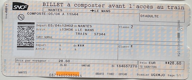 SNCF, “Nantes—Le Mans Train,” fishtickets, accessed January 15, 2026, http://pilotfish.info/items/show/357.