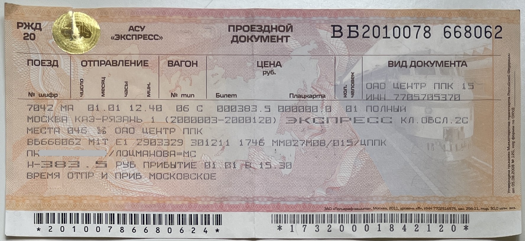 Russian Railways, “Поезд Москва—Рязань / Moscow—Ryazan Train,” fishtickets, accessed March 4, 2026, http://pilotfish.info/items/show/358.