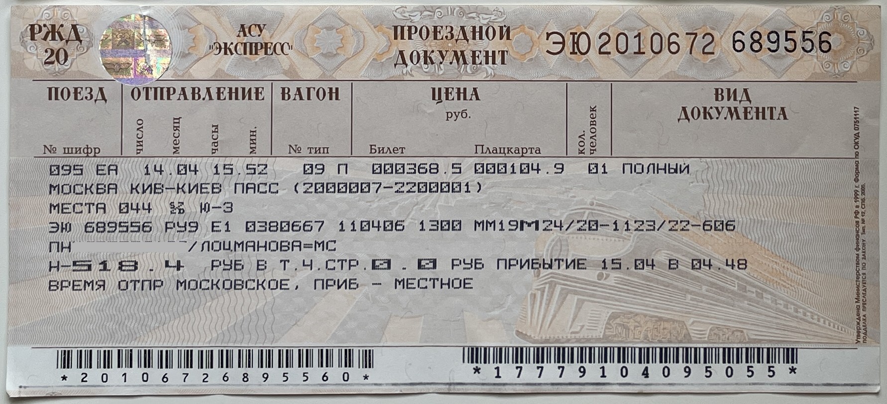 Russian Railways, “Поезд Москва—Киев / Kyiv—Moscow Train,” fishtickets, accessed January 15, 2026, http://pilotfish.info/items/show/360.