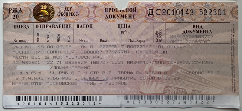 Russian Railways, “Поезд Москва—Евпатория / Yevpatoriya—Moscow Train,” fishtickets, accessed March 4, 2026, http://pilotfish.info/items/show/368.