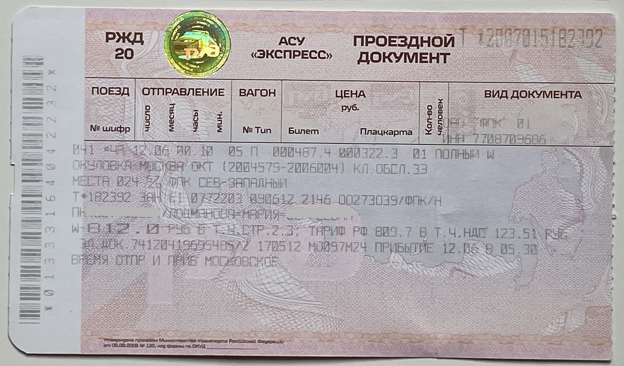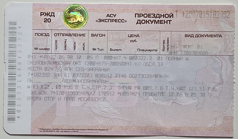 Russian Railways, “Поезд Окуловка—Москва / Okulovka—Moscow Train,” fishtickets, accessed March 4, 2026, http://pilotfish.info/items/show/371.