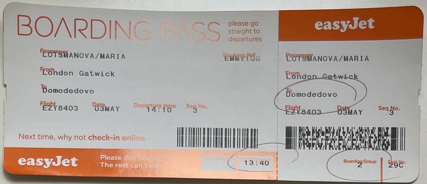 easyJet, “London—Moscow Flight,” fishtickets, accessed March 4, 2026, http://pilotfish.info/items/show/379.