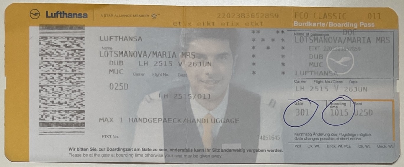 Lufthansa, “Dublin—Munich Flight,” fishtickets, accessed March 4, 2026, http://pilotfish.info/items/show/399.