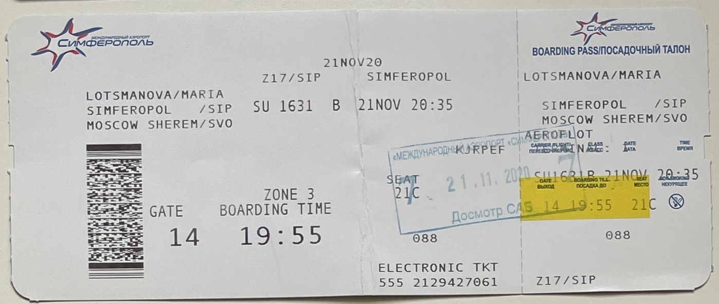 Aeroflot, “Simferopol—Moscow Flight,” fishtickets, accessed March 4, 2026, http://pilotfish.info/items/show/412.