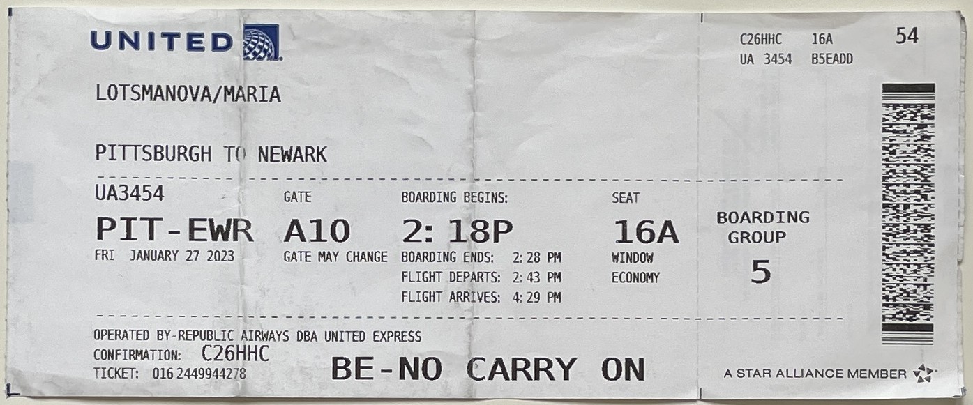United Airlines, “Pittsburgh—New York Flight,” fishtickets, accessed March 4, 2026, http://pilotfish.info/items/show/413.