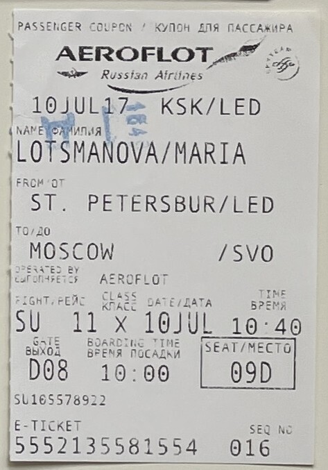 Aeroflot, “Saint Petersburg—Moscow Flight,” fishtickets, accessed March 4, 2026, http://pilotfish.info/items/show/423.