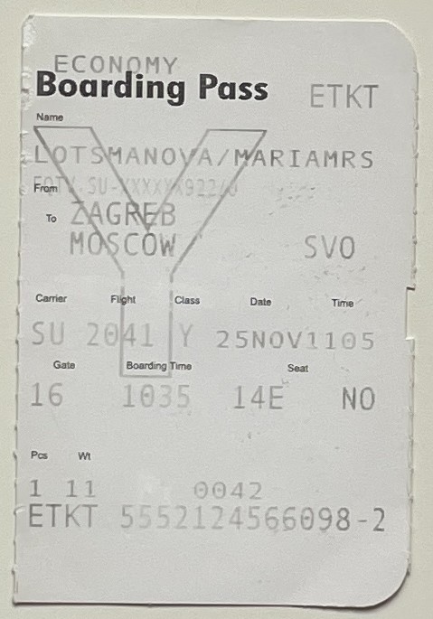 Aeroflot, “Zagreb—Moscow Flight,” fishtickets, accessed March 4, 2026, http://pilotfish.info/items/show/434.