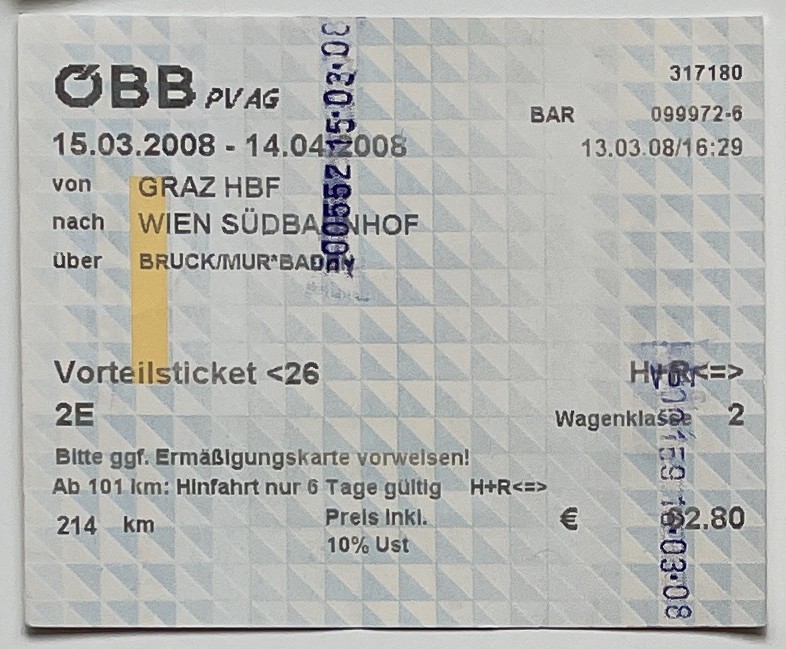 Austrian Federal Railways / Österreichische Bundesbahnen, “Graz—Vienna Train,” fishtickets, accessed March 4, 2026, http://pilotfish.info/items/show/451.