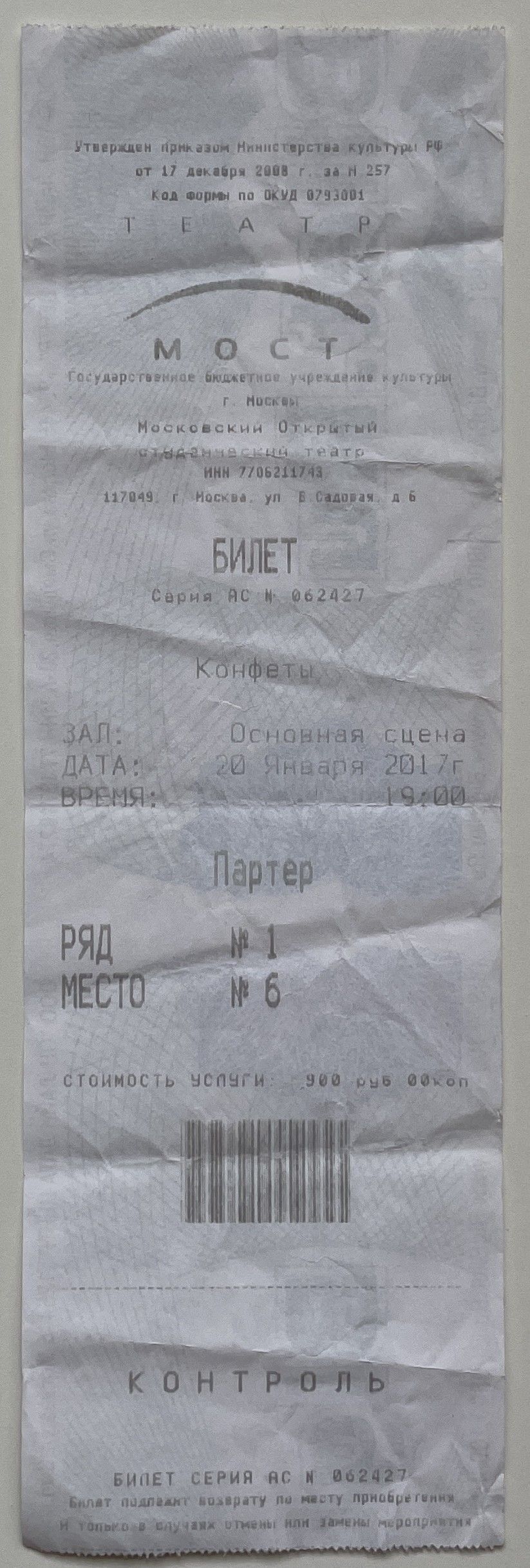 MOST Theater, “Конфеты / Sweets,” fishtickets, accessed January 8, 2026, http://www.pilotfish.info/items/show/104.