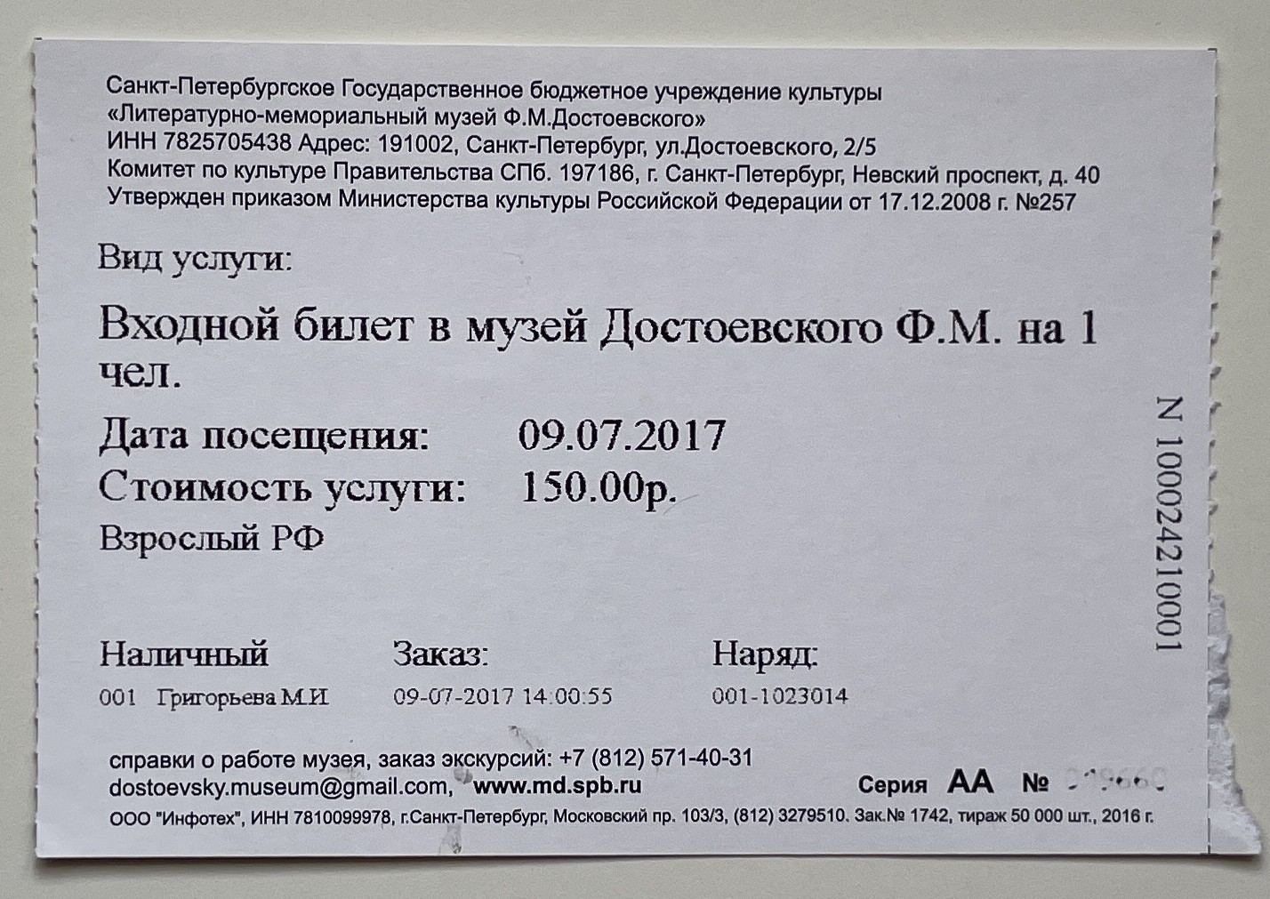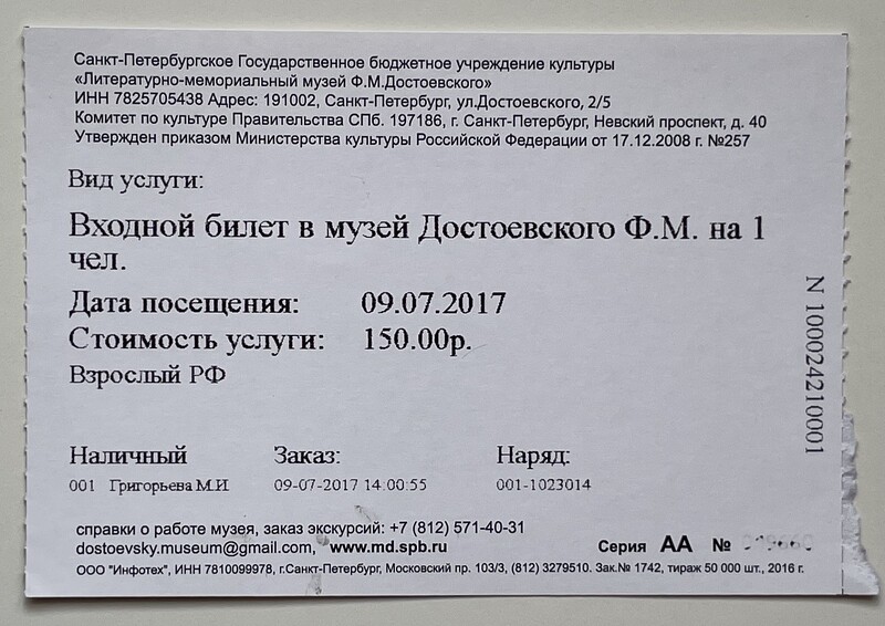 Dostoevsky Museum, “Музей Достоевского / Dostoevsky Museum,” fishtickets, accessed January 9, 2026, http://www.pilotfish.info/items/show/106.