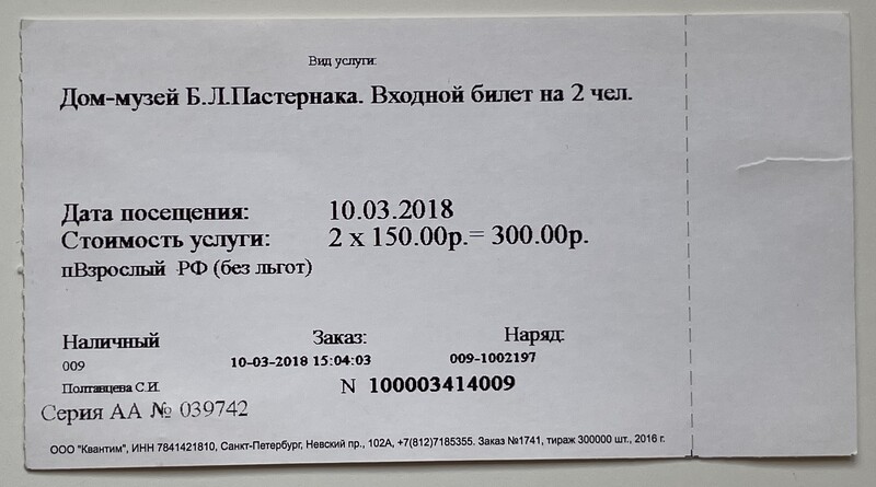 Boris Pasternak House Museum, “Дом-музей Бориса Пастернака / Boris Pasternak House Museum,” fishtickets, accessed January 8, 2026, http://www.pilotfish.info/items/show/116.