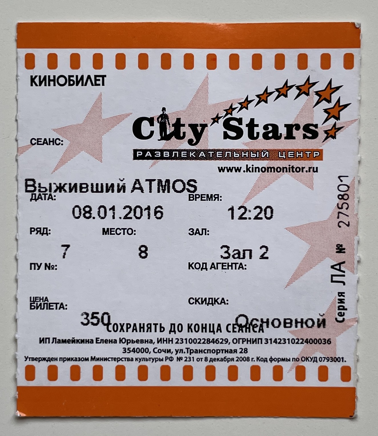 City Stars, “Выживший / The Revenant,” fishtickets, accessed January 9, 2026, http://www.pilotfish.info/items/show/12.