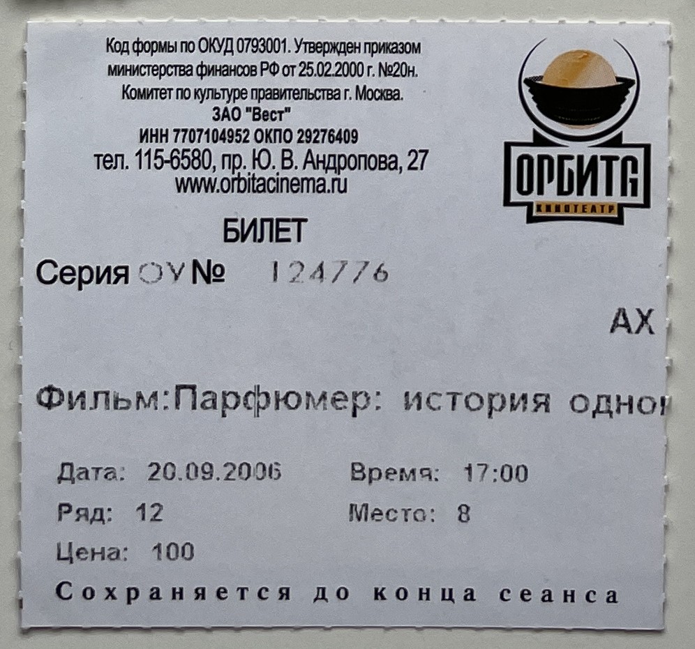 Orbita, “Парфюмер: история одного убийцы / Perfume: The Story of a Murderer,” fishtickets, accessed January 8, 2026, http://www.pilotfish.info/items/show/148.