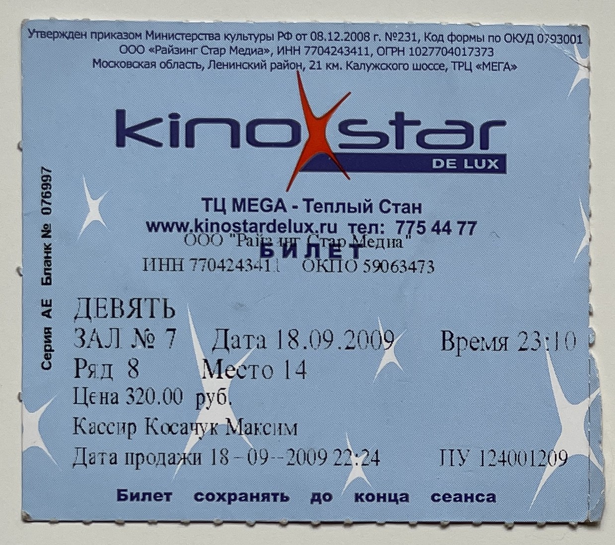 Kinostar de Lux, “Девять / Nine,” fishtickets, accessed January 9, 2026, http://www.pilotfish.info/items/show/156.