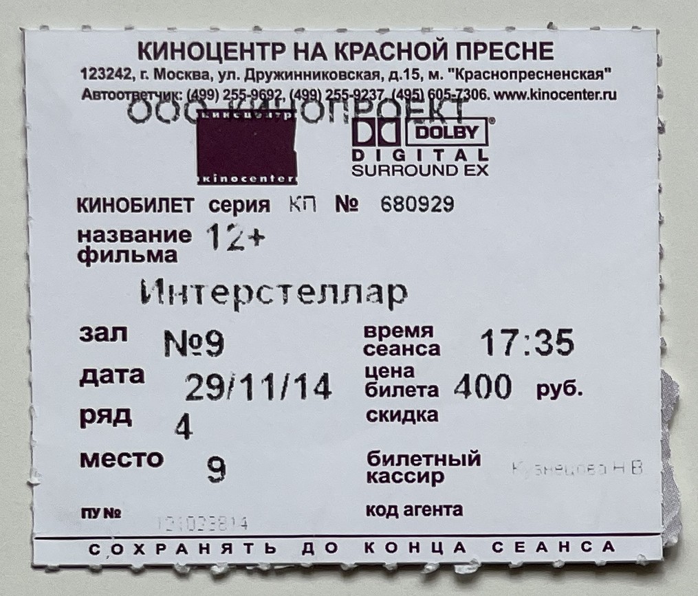 Cinema Center on Krasnaya Presnya, “Интерстеллар / Interstellar,” fishtickets, accessed January 9, 2026, http://www.pilotfish.info/items/show/160.