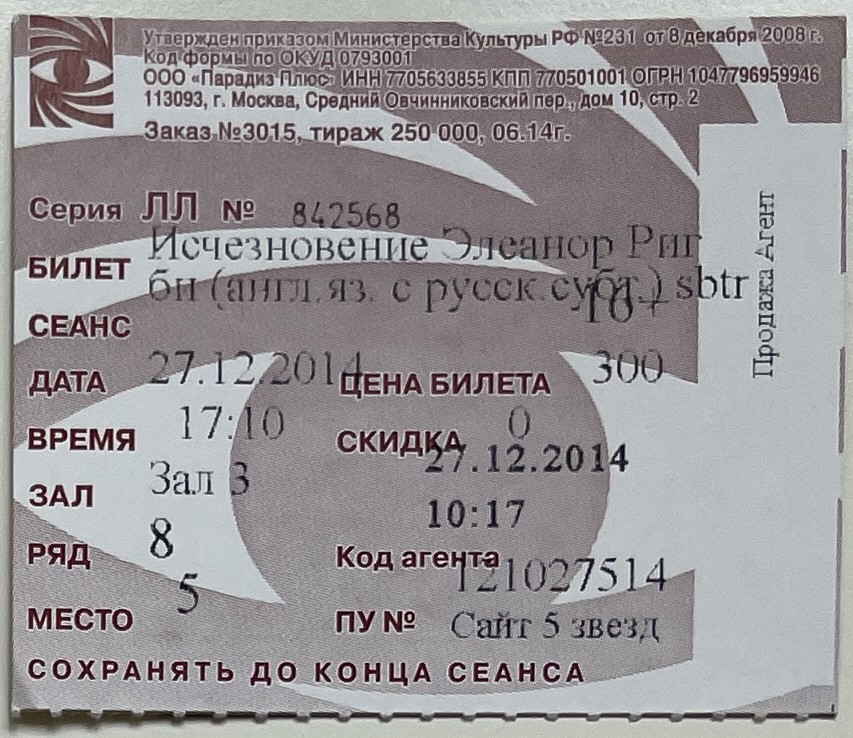 5 Zvezd, “Исчезновение Элеанор Ригби / The Disappearance of Eleanor Rigby,” fishtickets, accessed January 8, 2026, http://www.pilotfish.info/items/show/202.