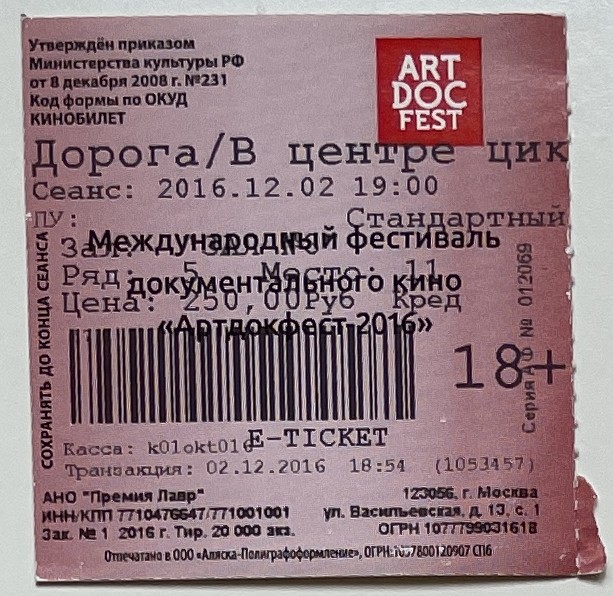 Karofilm Oktyabr, “Дорога / В центре циклона / The Road / In the Center of the Cyclone,” fishtickets, accessed January 9, 2026, http://www.pilotfish.info/items/show/289.