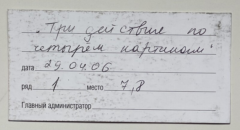 Praktika Theater, “Три действия по четырём картинам / Three acts in four scenes,” fishtickets, accessed February 22, 2026, http://www.pilotfish.info/items/show/33.