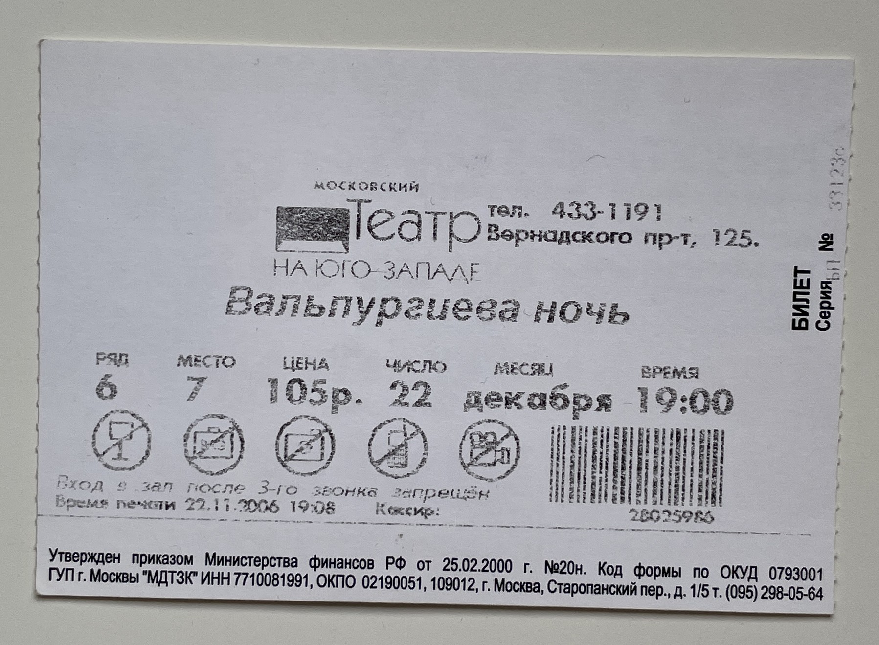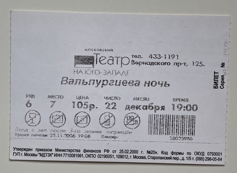 South-West Theater, “Вальпургиева ночь / Walpurgis Night,” fishtickets, accessed January 8, 2026, http://www.pilotfish.info/items/show/52.