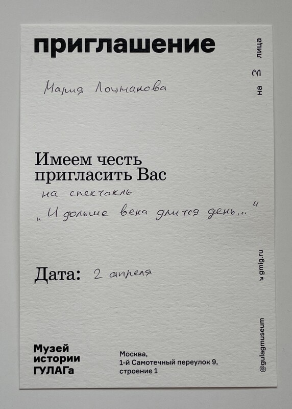 GULAG History Museum, “И дольше века длится день / The Day Lasts More Than a Hundred Years,” fishtickets, accessed December 13, 2025, https://pilotfish.info/items/show/1.